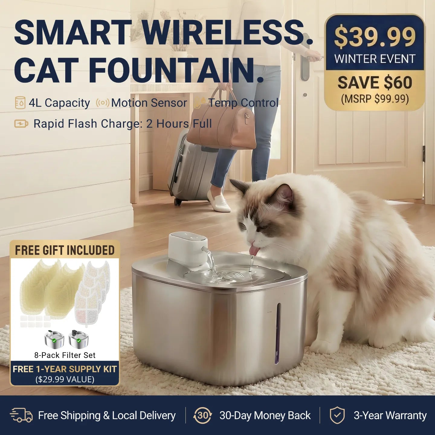 When the world gets cold, their water stays warm. No cords, no hazards—only safety and comfort that quietly fits into your home.