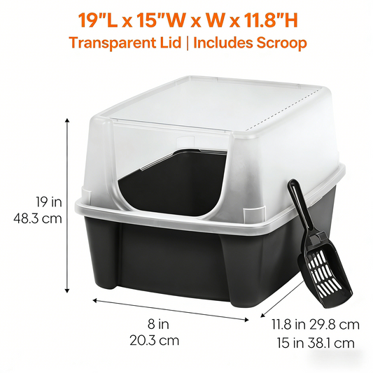 High Sided Litter Box with Scatter Shield & Scoop