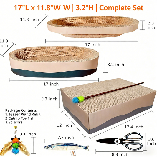 3-Pack Oval Cat Scratcher Bed, Corrugated Cardboard
